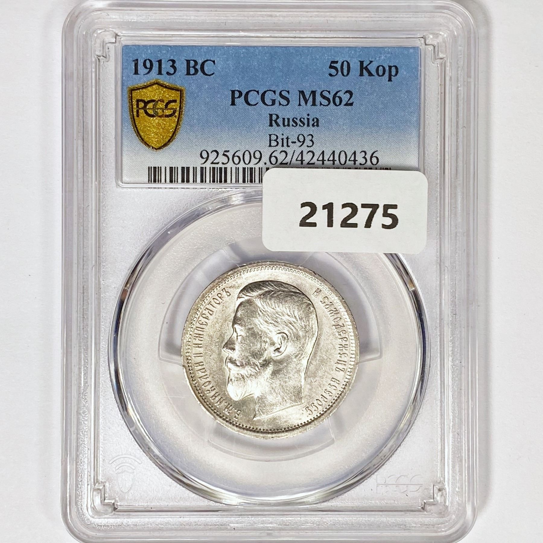 1913 BC 50 Kopeks Russia PCGS MS62 Bit-93