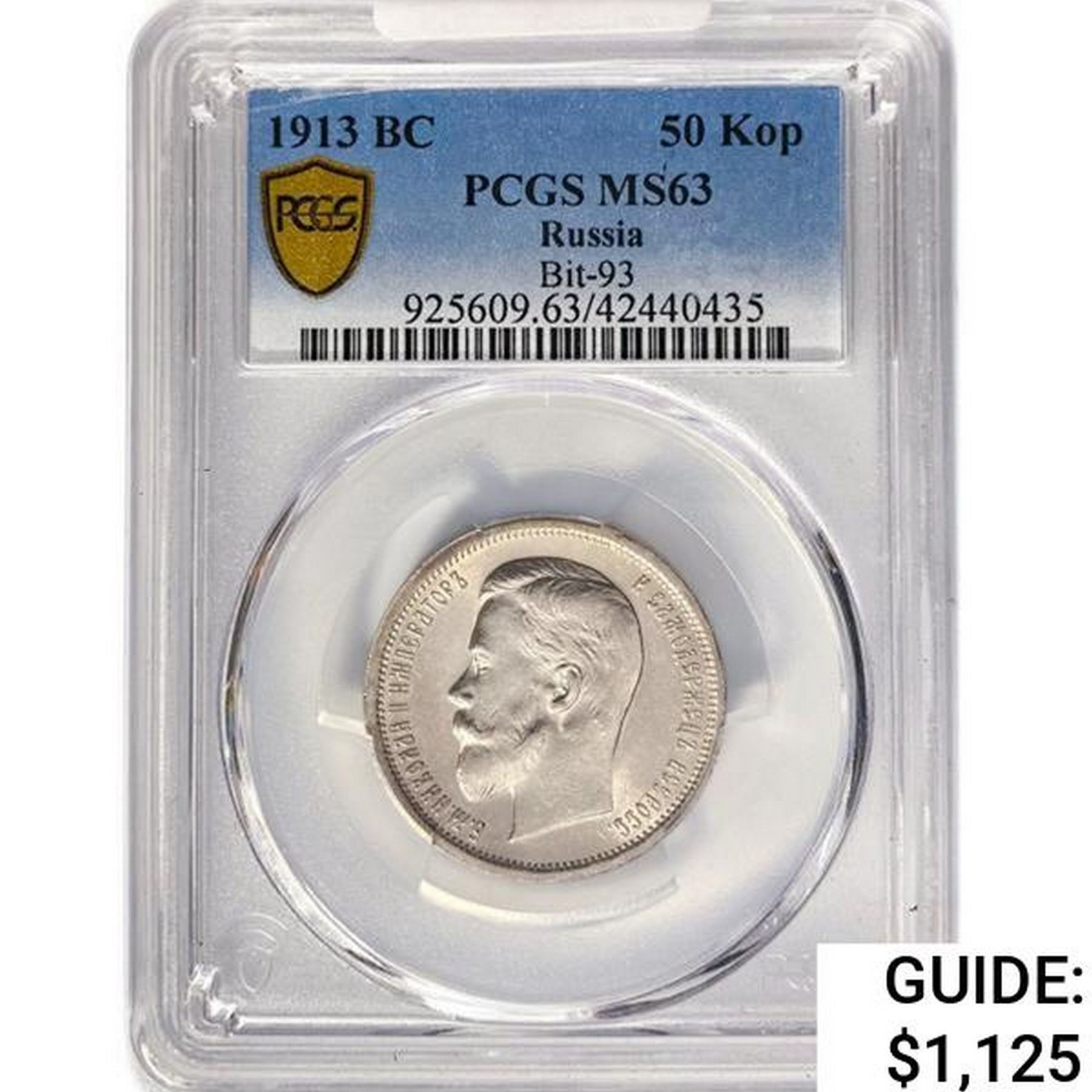 1913 BC 50 Kopeks Russia PCGS MS63 Bit-93