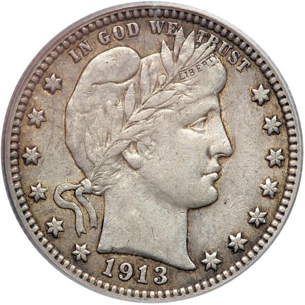 1913. PCGS graded EF-40. Well struck and lightly toned. For many years this sleeper P-mint issue was overlooked until enough people finally realized the low mintage of 484,000 is unusual for Philadelphia (PCGS # 5664) .