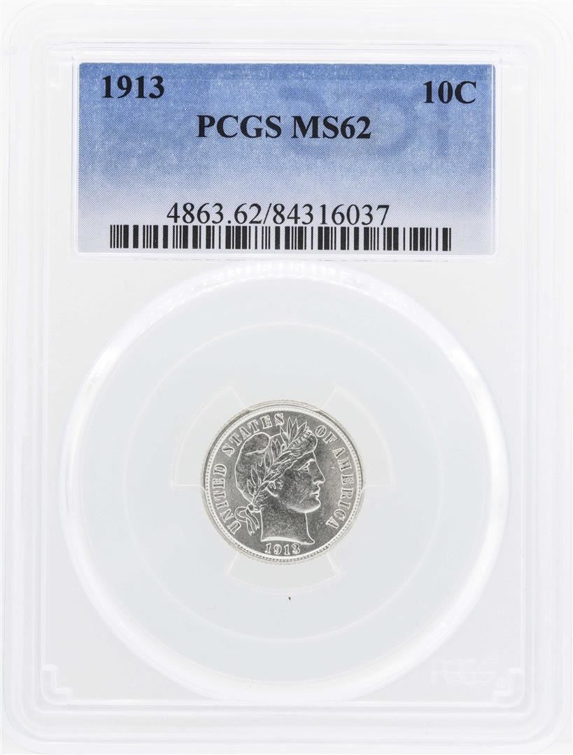 One 1913 Barber Dime Coin PCGS MS62. PCGS Graded.
