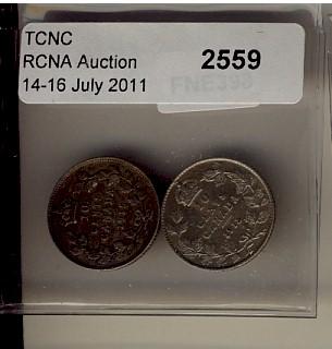 9. The cataloguer has taken every reasonable measure to ensure that all of the lots in this sale are as described and genuine. All raw coins and banknotes have been graded by the cataloguer or the auction house which represent our best professional opinion. To grade coins and banknotes, we use Canadian grading standards, 31 years of experience and good conscience. Grading is a subjective description in the opinion of the cataloguer or the auction house. Among experts there are often differences of opinion on the grading and the eye appeal of a coin. The strike and the state of preservation are often debated. TCNC acts as an agent between consignors and buyers. TCNC does not guarantee that any coin or banknote catalogued will meet the standards, or the grade, of any third party grading companies. No warranty, whether impressed or implied.