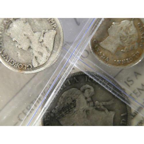 1913 Broad Leaves ICCS AG-3. Plus Five Cents 1887 and Twenty Five Cents 1894, both ICCS VG-10. Total three lightly toned pieces