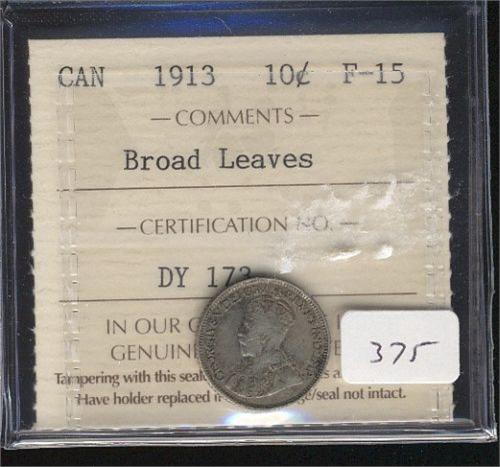 1913 Broad Leaves ICCS F15 medium tone, a scarce coin!