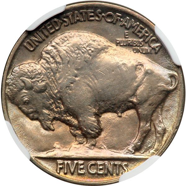 1913 Buffalo Nickel. Type 2. NGC graded MS-65. Lovely rainbow toning. Stored in a Dansco Album for years.