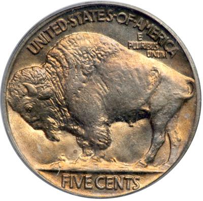 1913 Buffalo Nickel. Type 2. PCGS graded MS-66. Lovely golden toning. This is a thickly frosted, Gem quality representative of this desirable Type 2 release for 1913 (PCGS # 3921) .