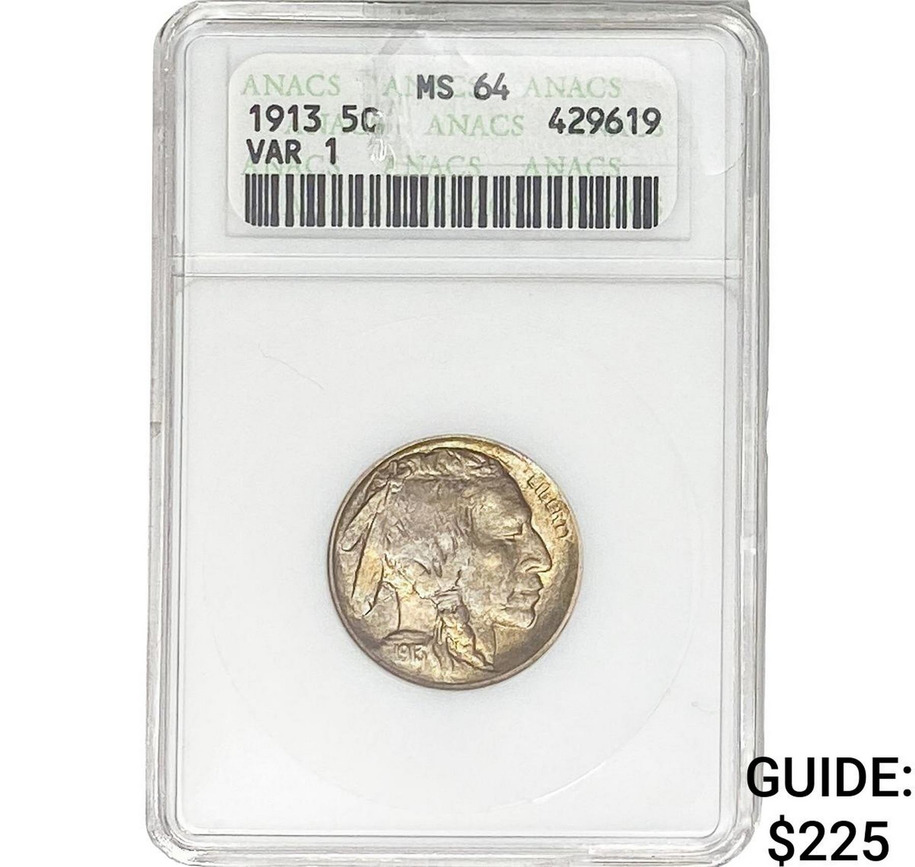 1913 Buffalo Nickel ANACS MS64 VAR 1