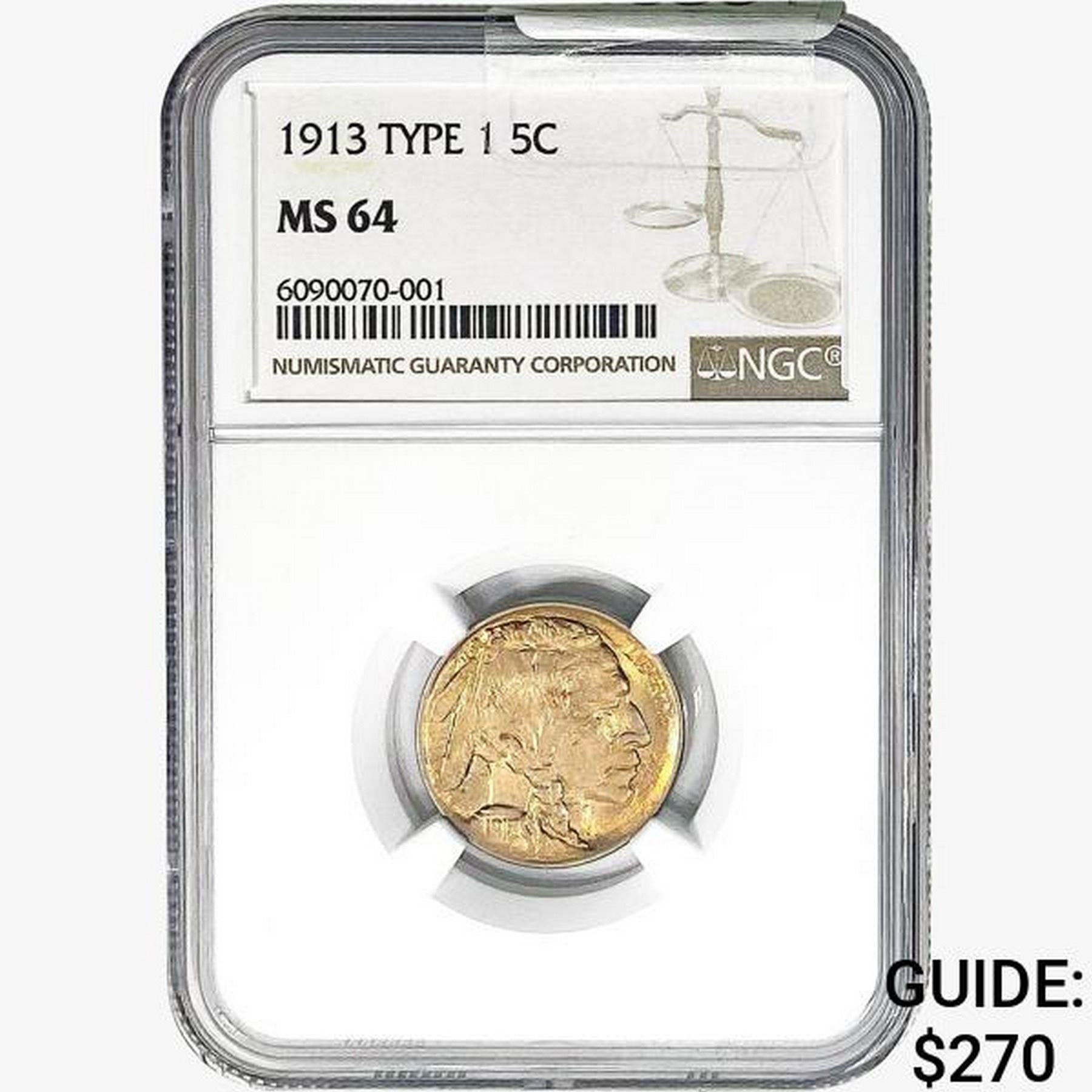 1913 Buffalo Nickel NGC MS64 TY1