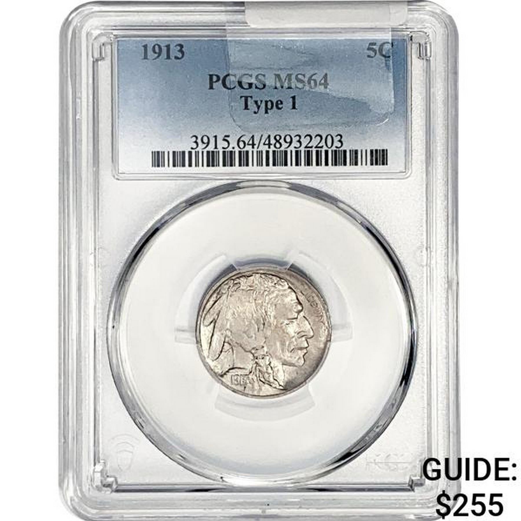 1913 Buffalo Nickel PCGS MS64 Ty 1