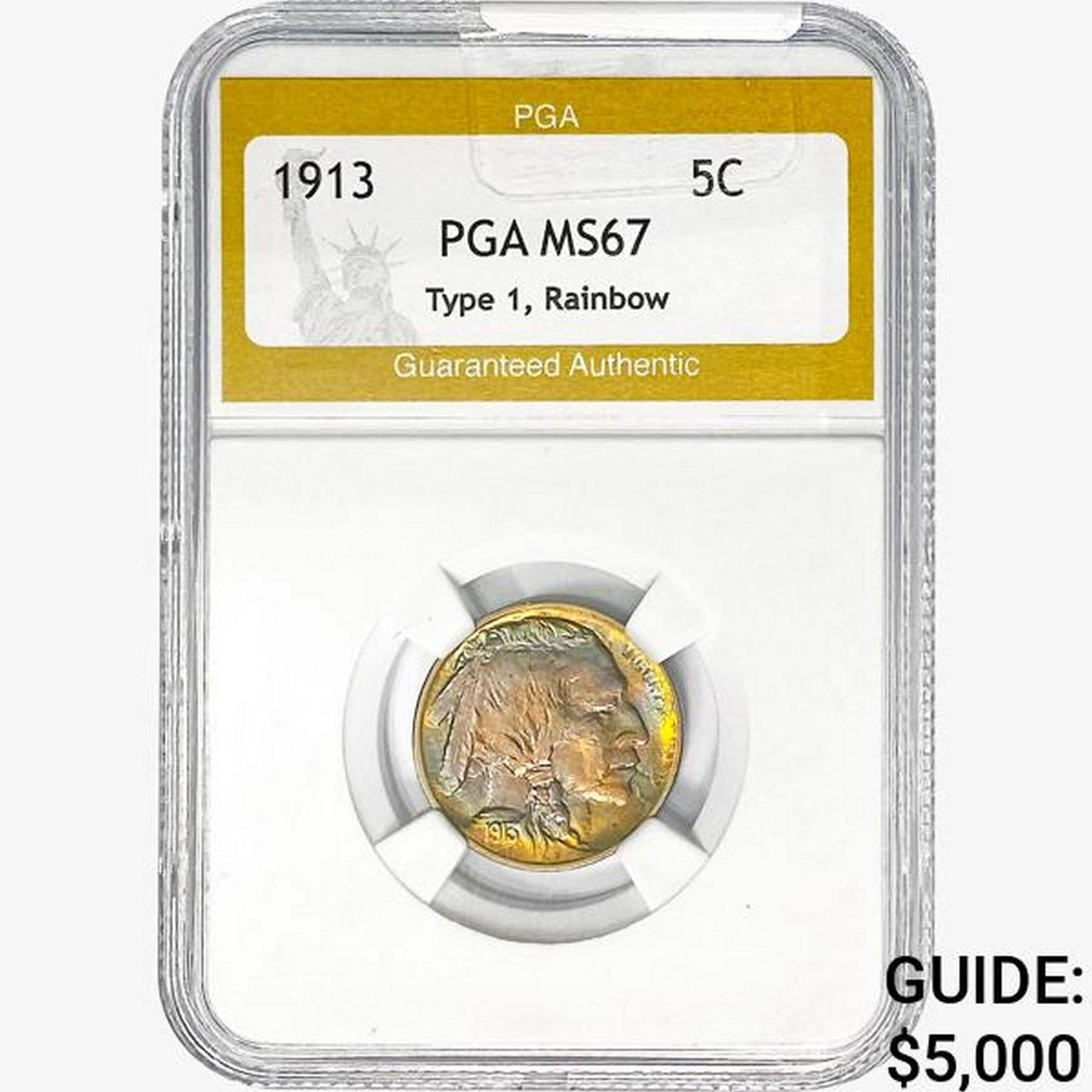 1913 Buffalo Nickel PGA MS67 TY1, Rainbow