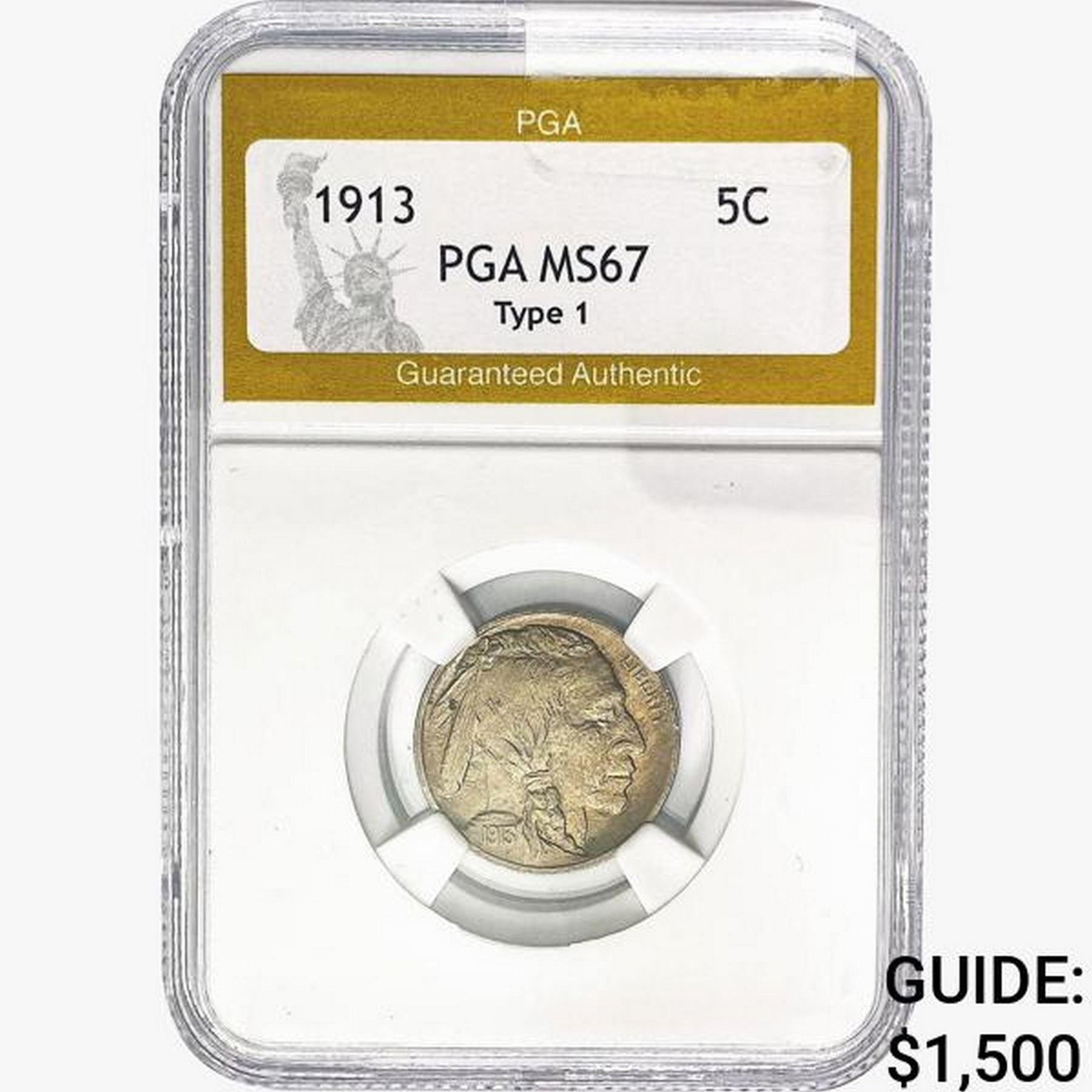 1913 Buffalo Nickel PGA MS67 TYPE 1