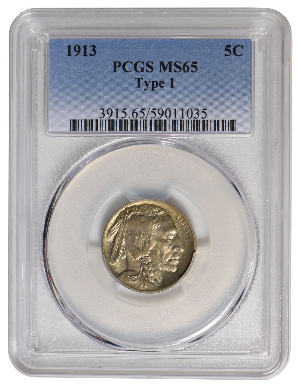 One 1913 Buffalo Nickel Type I PCGS MS65.