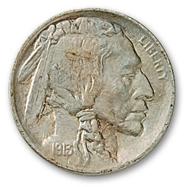 A very first Buffalo Nickel released in 1913. It was designed by James E. Fraser, whose initial “F” appears beneath the date. More than anything, the coin’s “Wild West” designs of a Native American and buffalo made it an instant success.