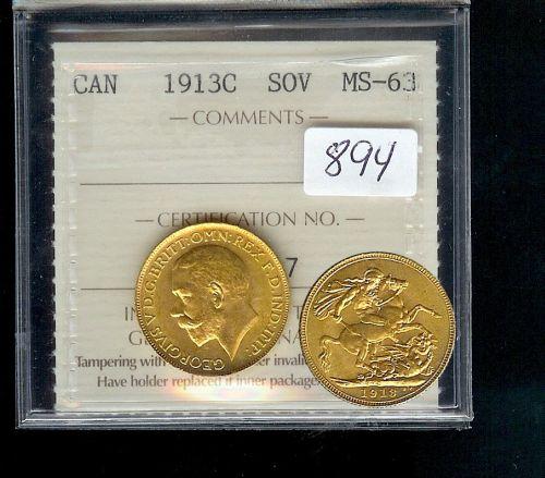 1913-C "Sovereign" ICCS MS63, fully brilliant and lustrous, very scarce in this condition. A nice example.