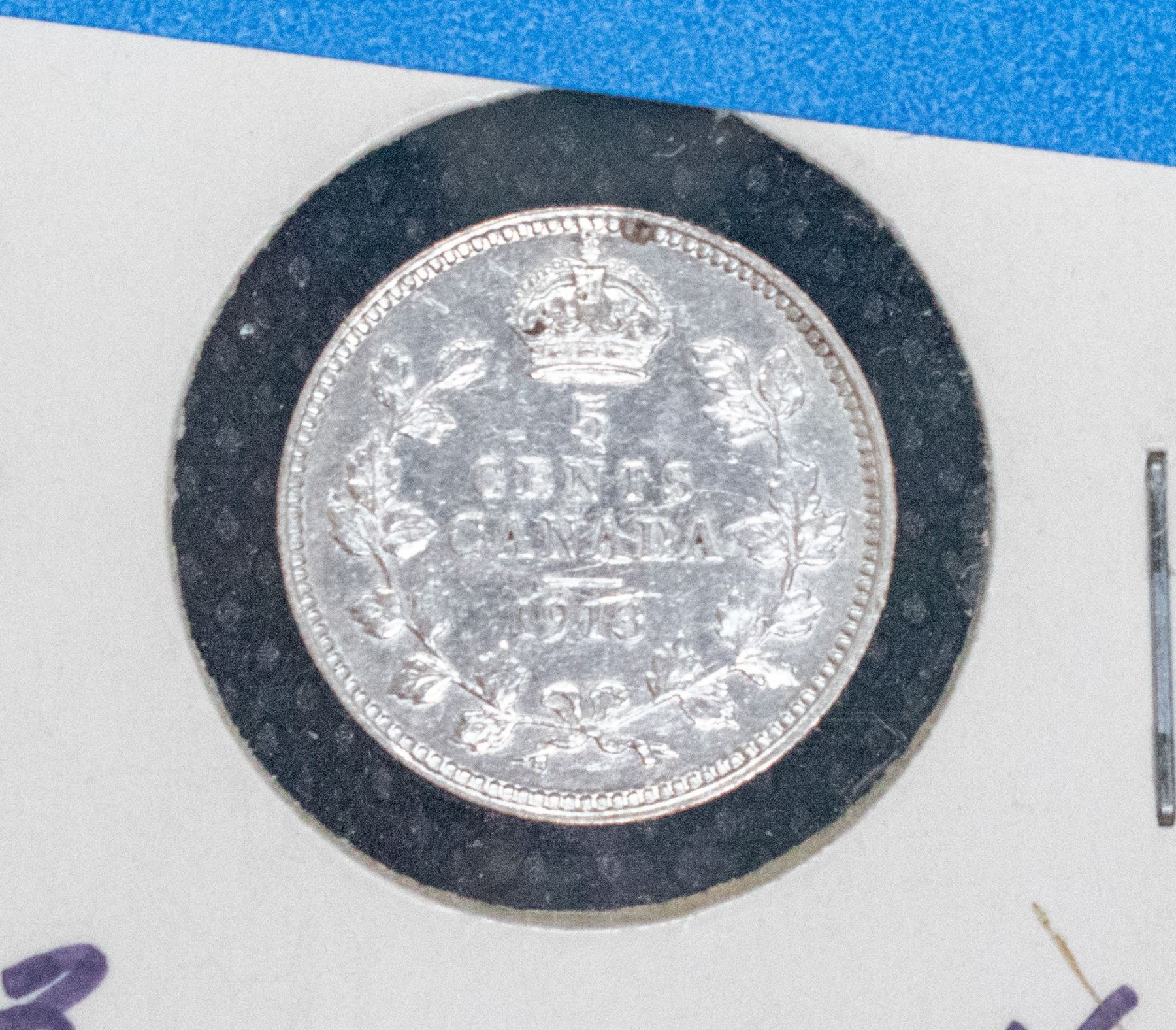 1913 CANADA SILVER 5 CENT COIN VF
