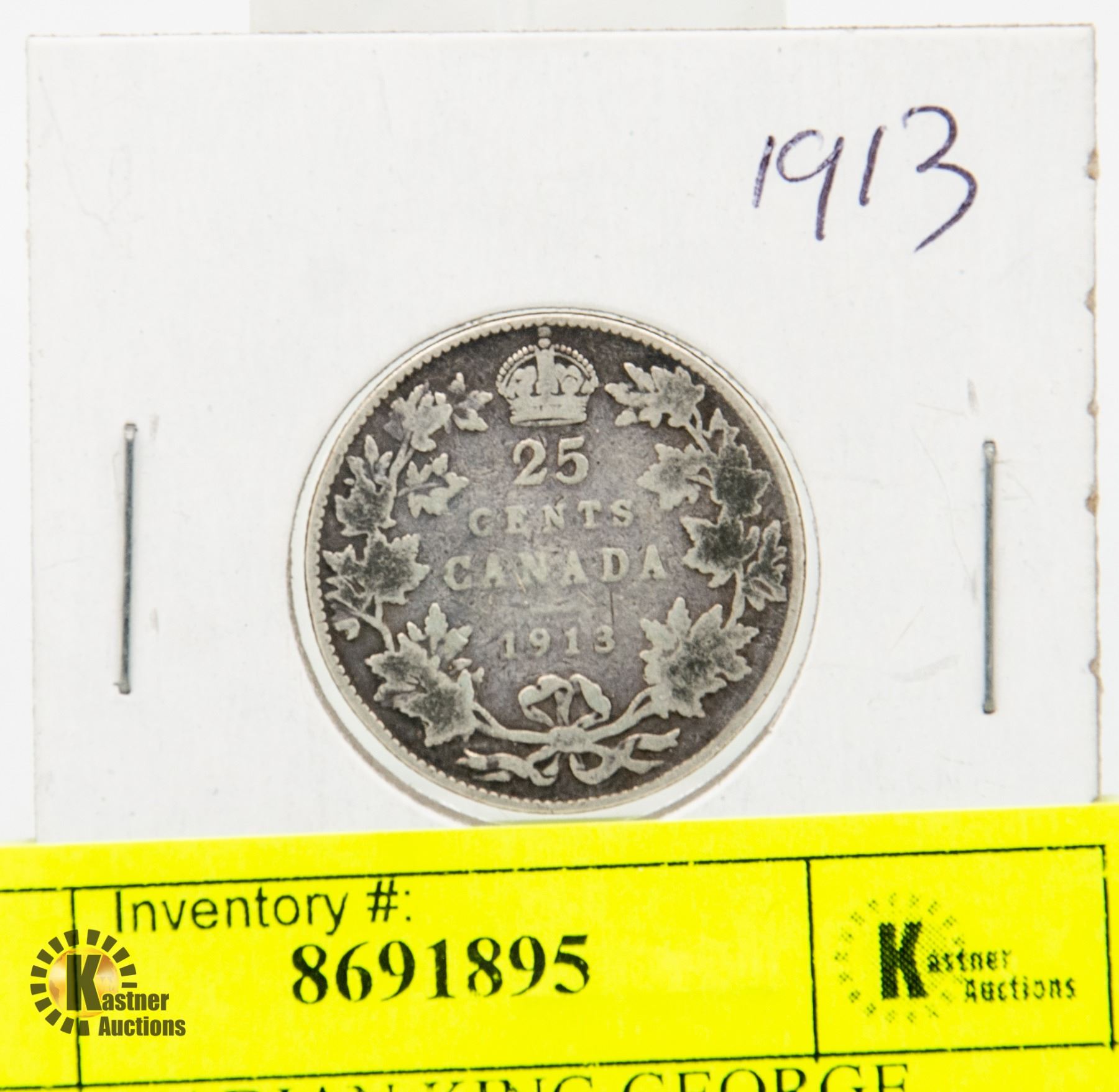 1913 CANADIAN KING GEORGE SILVER QUARTER