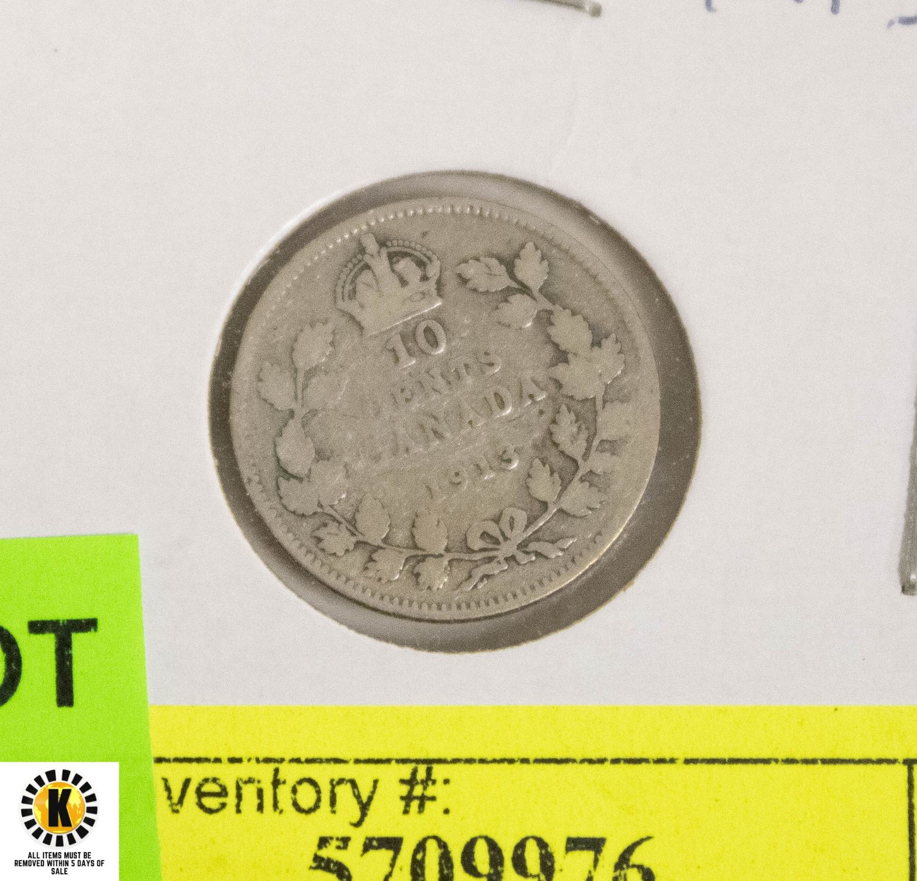 1913 CANADIAN SILVER 10 CENT COIN