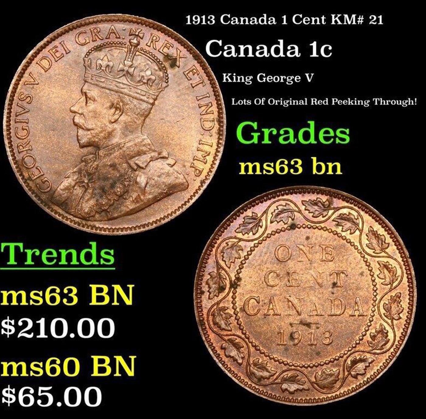 1913 Canada 1 Cent KM# 21 Grades Select Unc BN.