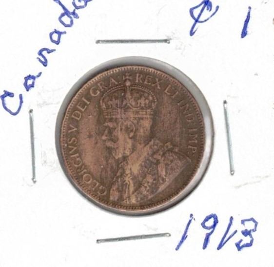 1913 Canadian Large One Cent