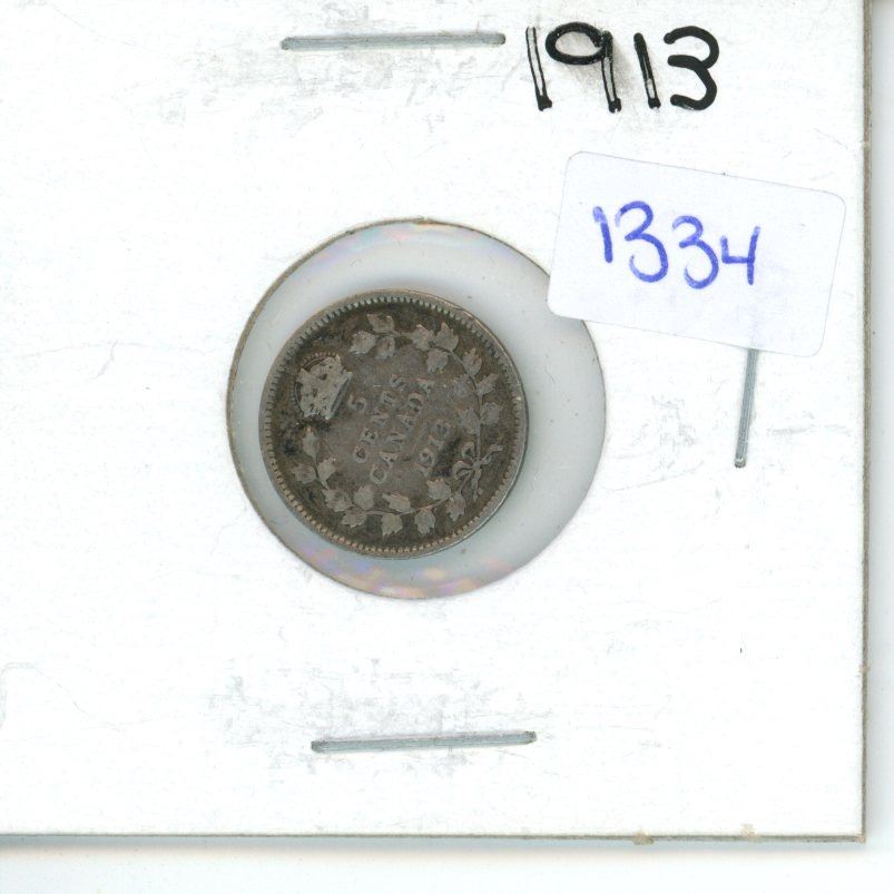 1913 Canadian Small 5 Cent Coin - 92.5% Silver, 7.5% Copper
