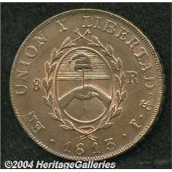 <B>1913 Centenario, </B></I>Bronze Copy of an 8 Reales 1813. BU. <BR><BR><B>Important notice:</B> Heritage usually auctions material at the rate of 200-250 lots per hour. On some occasions eBay Live bid software or the Internet may not be able to keep up with the pace of the auction. We recommend placing a realistic absentee bid now as insurance to avoid disappointment. Occasionally the auctioneer may eliminate or reject an eBay Live bid, and the auctioneer may also reopen a lot after the close of the eBay live bidding (usually because we missed an audience bid), and may reject your bid even if it shows you as the winning bidder. By bidding via eBay Live, you agree that Heritage may award the lot to another bidder at its sole discretion under the circumstances described above or any other reasonable circumstances. Since eBay bids are not shown to us until we open the lot on the floor, we treat those bids just like floor bids. In most cases the floor responds before the eBay bid is presented to us, due to Internet lag time, so for consistency we have made it a policy that floor bids are always considered first over tie eBay live bids. Also please note that all Heritage lots purchased through eBay Live carry a 20% Buyer's Premium. Please make sure you read the Terms and Conditions before you bid.