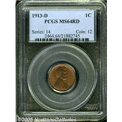 <B>1913-D 1C MS64 Red PCGS.</B></I> Soft luster underlays orange and faded crimson patination. Just a few tiny flecks are seen over each side.