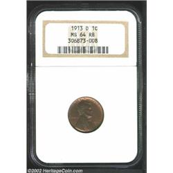 1913-D 1C MS64 Red and Brown NGC. Even lavender patina dominates, with hints of the original crimson color in selected areas. A boldly struck near-Gem with moderate luster and unabraded surfaces. Important notice: We expect to be auctioning lots at the rate of 200-250 per hour. Sometimes eBay Premier live bid software cannot keep up with that pace, so we strongly recommend that you place a realistic proxy bid now as insurance to avoid disappointment. Also please note that all Heritage/CAA lots purchased through eBay Premier carry a 20% Buyer's Premium. Please make sure you read the Terms and Conditions.