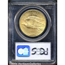 <B>1913-D<$20> MS64 PCGS.</B></I> Well struck design elements, glowing luster, and minimally abraded copper-orange surfaces characterize this double eagle. <BR><BR><B>Important notice:</B> Heritage usually auctions material at the rate of 200-250 lots per hour. On some occasions eBay Live bid software or the Internet may not be able to keep up with the pace of the auction. We recommend placing a realistic absentee bid now as insurance to avoid disappointment. Occasionally the auctioneer may eliminate or reject an eBay Live bid, and the auctioneer may also reopen a lot after the close of the eBay live bidding (usually because we missed an audience bid), and may reject your bid even if it shows you as the winning bidder. By bidding via eBay Live, you agree that Heritage may award the lot to another bidder at its sole discretion under the circumstances described above or any other reasonable circumstances. Since eBay bids are not shown to us until we open the lot on the floor, we treat those bids just like floor bids. In most cases the floor responds before the eBay bid is presented to us, due to Internet lag time, so for consistency we have made it a policy that floor bids are always considered first over tie eBay live bids. Also please note that all Heritage lots purchased through eBay Live carry a 20% Buyer's Premium. Please make sure you read the Terms and Conditions before you bid. </span></font></tr></table></td></tr></table>