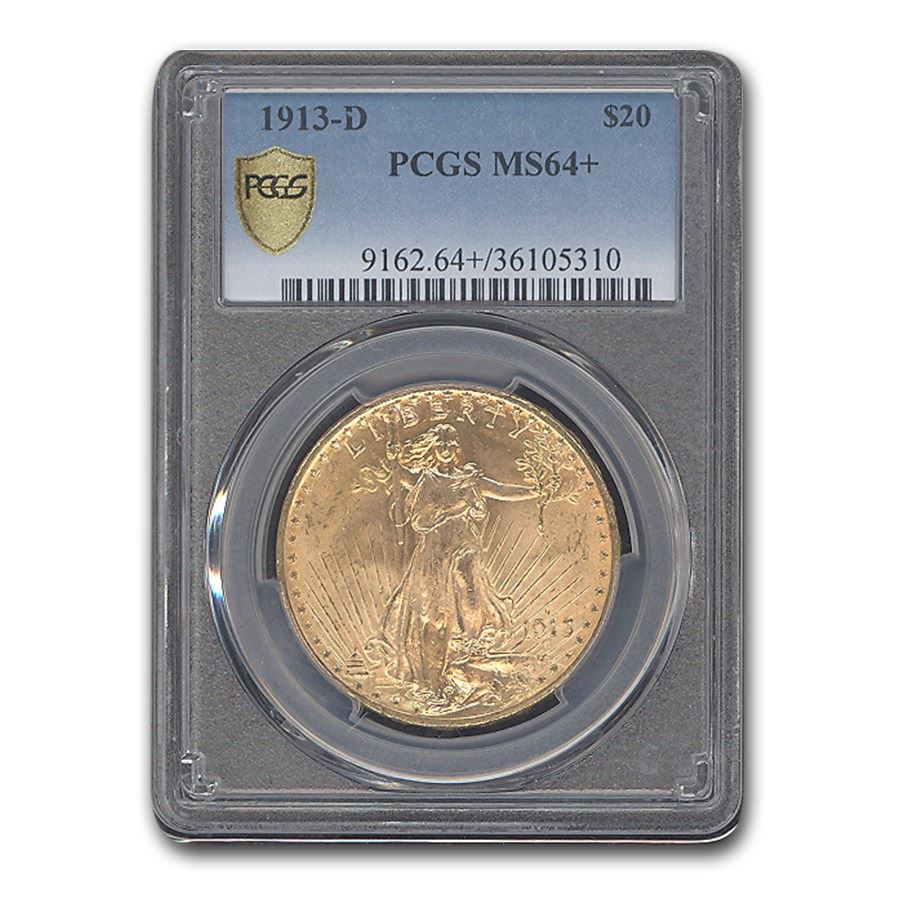 1913-D $20 Saint-Gaudens Gold Double Eagle MS-64+ PCGS