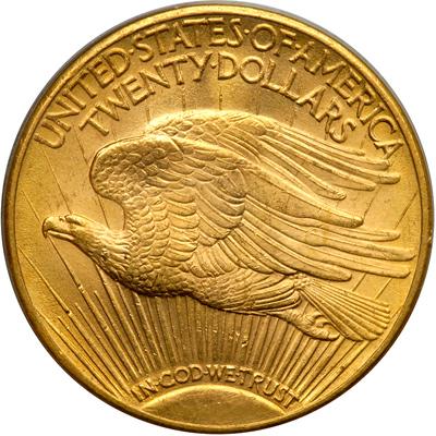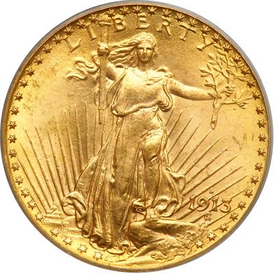 1913-D $20 St. Gaudens. PCGS graded MS-64. Nice lustrous fields. A vibrant example whose excellent luster and surfaces are relatively free from all but the most trivial luster grazes. In addition, all minute detail fully evident on this bold '13-D (PCGS # 9162) .