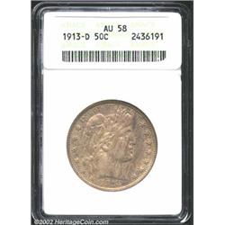 1913-D 50C AU58 ANACS. The strike is a bit soft and the luster essentially full beneath russet tonin