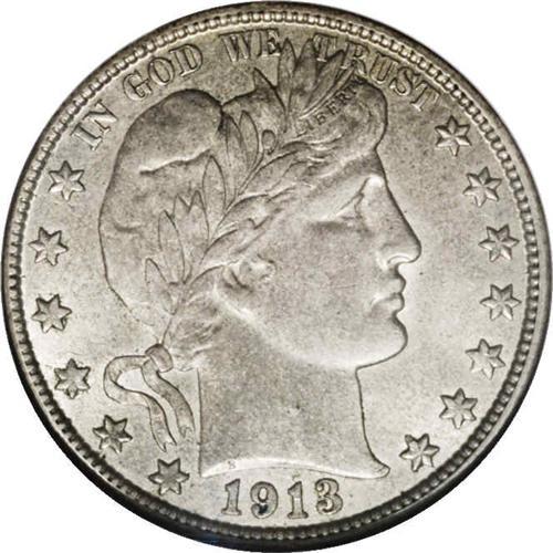 <B>1913-D<50C> AU58 NGC.</B></I> Warm golden-gray toning with almost all of the original mint luster still surviving in the fields. The strike is average, with softness noted on some of the obverse stars and on the highpoints of the eagle's plumage. Only 534,000 half dollars were coined at the Denver Mint during the year, a figure that's well below average for the Barber design type; indeed, only a few other issues in the series have lower mintages.