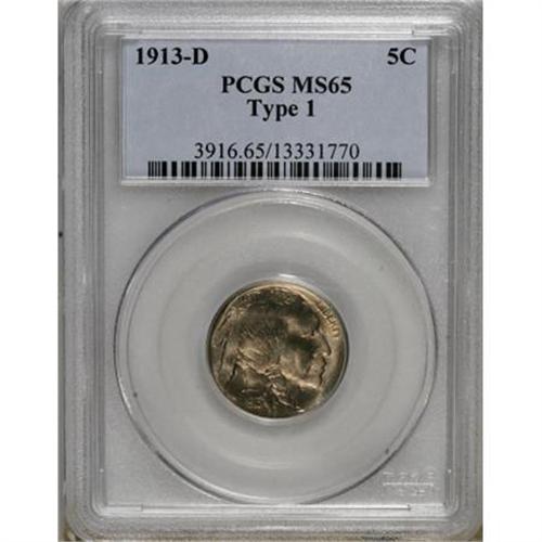 <B>1913-D 5C Type One MS65 PCGS.</B></I> PCGS Population (647/320). NGC Census: (455/170). Mintage: 5,337,000. Numismedia Wsl. Price for NGC/PCGS coin in MS65: $246. (#3916)<BR><BR><B>Coin Engraver:</B> James E. Fraser<BR><BR><b>Shipping:</b> Coins & Currency (<a target="_blank" href="http://www.heritageauctions.com/common/shipping.php">view shipping information</a>)