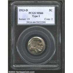 <TR><TD width="100%"><TABLE cellSpacing=1 cellPadding=3 width="100%" border=0><TBODY><TR><TD width="100%" bgColor=#79735c><FONT face=arial color=#ffffff size=3><B>Description</B> </FONT></TD></TR><TR><TD width="100%" bgColor=#ffffff><FONT face=arial size=2><B>1913-D 5C Type One MS66 PCGS.</B></I> Olive, champagne-rose, and steel-blue hues embrace this lustrous and sharply struck Gem. The Denver Mint issue of this ephemeral type is considerably scarcer than its Philadelphia Mint counterpart. Struck from lightly clashed dies. </FONT></TD></TR></TBODY></TABLE></TD></TR></TBODY></TABLE><BR><A name=PricesRealized></A><TABLE cellSpacing=0 cellPadding=0 width="100%" bgColor=#000000 border=0><TBODY><TR><TD width="100%"><TABLE cellSpacing=1 cellPadding=3 width="100%" border=0><TBODY><TR><TD width="100%" bgColor=#79735c><A name=PR><FONT face=arial color=#ffffff size=3><B>Previous Prices from Heritage Auctions</B> </FONT></A></TD></TR><TR><TD bgColor=#f6f6ed><TABLE cellSpacing=0 cellPadding=0 width="100%" border=1><TBODY><TR><TD align=middle width="33%"><B>Date</B></TD><TD align=middle width="33%"><B>Service</B></TD><TD align=middle width="33%"><B>Price</B></TD></TR><TR bgColor=whitesmoke><TD width="33%"><B>05/05/2003</B></TD><TD width="33%">PCGS</TD><TD width="33%">$1,495.00</TD></TR><TR bgColor=whitesmoke><TD width="33%"><B>06/04/2002</B></TD><TD width="33%">PCGS</TD><TD width="33%">$483.00</TD></TR><TR bgColor=whitesmoke><TD width="33%"><B>06/08/2002</B></TD><TD width="33%">PCGS</TD><TD width="33%">$437.00</TD></TR><TR bgColor=whitesmoke><TD width="33%"><B>06/08/2002</B></TD><TD width="33%">PCGS</TD><TD width="33%">$661.25</TD></TR><TR bgColor=whitesmoke><TD width="33%"><B>01/16/2001</B></TD><TD width="33%">PCGS</TD><TD width="33%">$380.00</TD></TR><TR bgColor=whitesmoke><TD width="33%"><B>01/09/1999</B></TD><TD width="33%">PCGS</TD><TD width="33%">$357.50</TD></TR><TR bgColor=whitesmoke><TD width="33%"><B>08/13/1996</B></TD><TD width="33%">PCGS</TD><TD width="33%">$319.00</TD></TR><TR bgColor=whitesmoke><TD width="33%"><B>01/05/1994</B></TD><TD width="33%">PCGS</TD><TD width="33%">$335.50</TD></TR><TR bgColor=whitesmoke><TD width="33%"><B>07/31/1993</B></TD><TD width="33%">PCGS</TD><TD width="33%">$412.50</TD></TR><TR bgColor=whitesmoke><TD width="33%"><B>04/30/1993</B></TD><TD width="33%">PCGS</TD><TD width="33%">$385.00</TD></TR><TR bgColor=whitesmoke><TD width="33%"><B>05/31/2001</B></TD><TD width="33%">PCGS</TD><TD width="33%">$488.75</TD></TR><TR bgColor=whitesmoke><TD width="33%"><B>04/05/2001</B></TD><TD width="33%">PCGS</TD><TD width="33%">$632.50</TD></TR><TR bgColor=whitesmoke><TD width="33%"><B>08/08/2001</B></TD><TD width="33%">PCGS</TD><TD width="33%">$488.75</TD></TR><TR bgColor=whitesmoke><TD width="33%"><B>02/22/1997</B></TD><TD width="33%">PCGS</TD><TD width="33%">$302.50</TD></TR><TR bgColor=whitesmoke><TD width="33%"><B>07/01/1996</B></TD><TD width="33%">PCGS</TD><TD width="33%">$715.00</TD></TR><TR bgColor=whitesmoke><TD width="33%"><B>10/01/1998</B></TD><TD width="33%">PCGS</TD><TD width="33%">$687.00</TD></TR><TR bgColor=whitesmoke><TD width="33%"><B>02/12/2000</B></TD><TD width="33%">PCGS</TD><TD width="33%">$603.75</TD></TR><TR bgColor=whitesmoke><TD width="33%"><B>02/24/1995</B></TD><TD width="33%">PCGS</TD><TD width="33%">$445.50</TD></TR><TR bgColor=whitesmoke><TD width="33%"><B>07/30/1994</B></TD><TD width="33%">PCGS</TD><TD width="33%">$1,815.00</TD></TR><TR bgColor=whitesmoke><TD width="33%"><B>05/03/2003</B></TD><TD width="33%">PCGS</TD><TD width="33%">$529.00</TD></TR><TR bgColor=whitesmoke><TD width="33%"><B>05/03/2003</B></TD><TD width="33%">PCGS</TD><TD width="33%">$632.50</TD></TR><TR bgColor=whitesmoke><TD width="33%"><B>03/01/2003</B></TD><TD width="33%">PCGS</TD><TD width="33%">$546.25</TD></TR><TR bgColor=whitesmoke><TD width="33%"><B>03/01/2003</B></TD><TD width="33%">PCGS</TD><TD width="33%">$546.25</TD></TR><TR bgColor=whitesmoke><TD width="33%"><B>03/23/2003</B></TD><TD width="33%">PCGS</TD><TD width="33%">$862.50</TD></TR><TR bgColor=whitesmoke><TD width="33%"><B>02/23/2001</B></TD><TD width="33%">NGC</TD><TD width="33%">$322.00</TD></TR><TR bgColor=whitesmoke><TD width="33%"><B>12/24/2002</B></TD><TD width="33%">PCGS</TD><TD width="33%">$494.50</TD></TR><TR bgColor=whitesmoke><TD width="33%"><B>08/13/2002</B></TD><TD width="33%">PCGS</TD><TD width="33%">$517.50</TD></TR><TR bgColor=whitesmoke><TD width="33%"><B>08/14/1995</B></TD><TD width="33%">NGC</TD><TD width="33%">$247.50</TD></TR></TBODY></TABLE></TD></TR><TR><TD bgColor=#ffffff><FONT face=arial size=1 ?>PLEASE NOTE: All prices realized reflect the final hammer price PLUS the buyer's premium in auctions that charge a buyer's premium. Each item has a notation at the top of the listing indicating whether that lot included a buyer's premium. Example: A item that sells with a final hammer price of $100 and a 20% buyer's premium will display with a price realized of $120. All information listed is intended to be as accurate as possible, but errors are possible. Please use this guide carefully and inform us of any inaccuracies. </FONT></TD></TR></TBODY></TABLE></TD></TR></TBODY></TABLE><BR><TABLE cellSpacing=0 cellPadding=0 width="100%" bgColor=#000000 border=0><TBODY><TR><TD width="100%"><TABLE cellSpacing=1 cellPadding=3 width="100%" border=0><TBODY><TR><TD width="100%" bgColor=#79735c colSpan=6><FONT face=arial color=#ffffff size=3><B>Price Guide*</B> </FONT></TD></TR><TR bgColor=#f6f6ed><TD align=middle><B>Grade</B> </TD><TD align=middle><B>Coin World<BR>(Trends)</B> </TD><TD align=middle><B>Numismedia<BR>Retail</B> </TD><TD align=middle><B>Numismedia<BR>Wholesale</B> </TD><TD align=middle><B>Coin<BR>Universe</B> </TD><TD align=middle><B>Heritage<BR>Value Index</B> </TD></TR><TR bgColor=#ffffff><TD align=middle>65</TD><TD align=right>$315.00</TD><TD align=right>$290.00</TD><TD align=right>$232.00</TD><TD align=right>$360.00</TD><TD align=right>$234.88</TD></TR><TR style="FONT-WEIGHT: bold" bgCol
