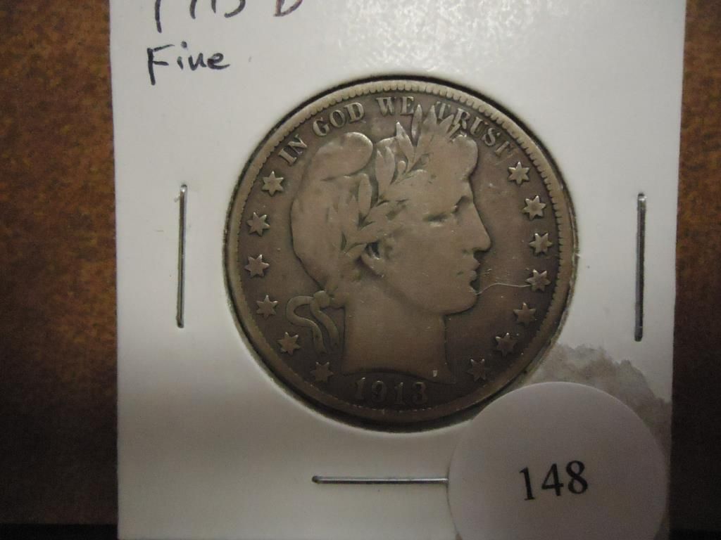 1913-D BARBER HALF DOLLAR FINE