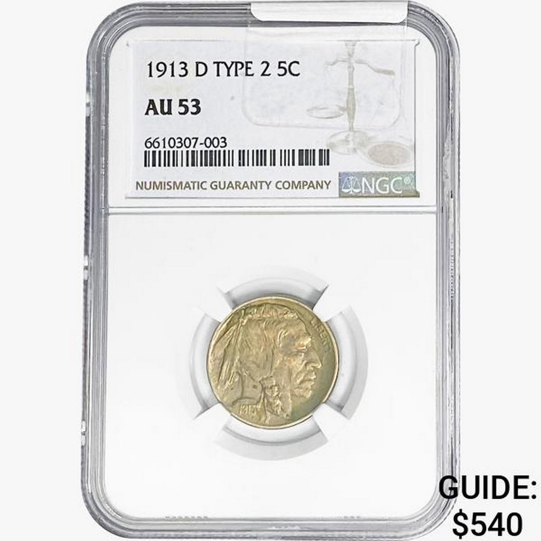 1913-D Buffalo Nickel NGC AU53 Type 2