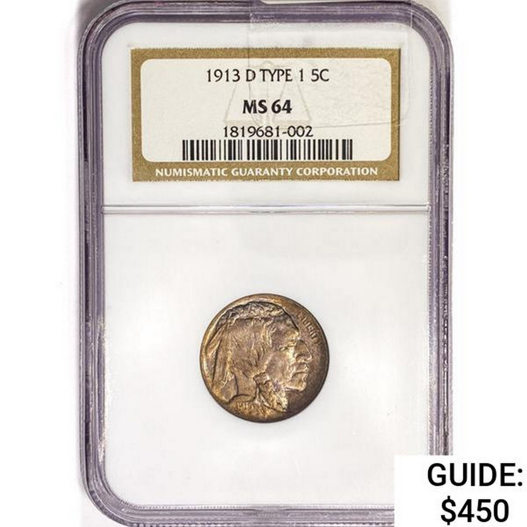 1913-D Buffalo Nickel NGC MS64 Type 1