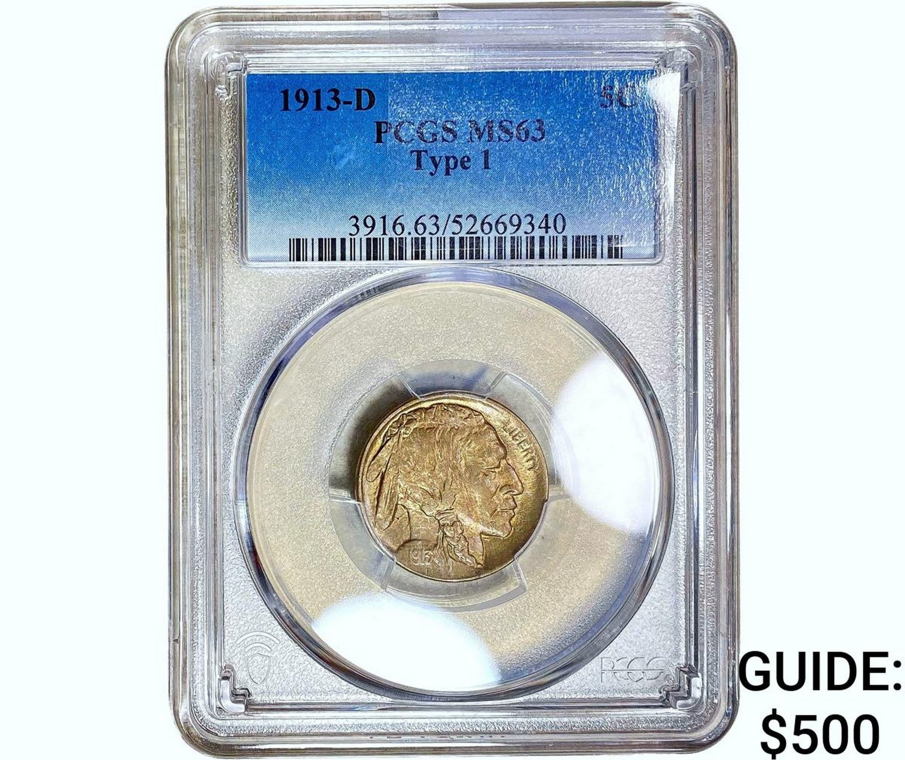1913-D Buffalo Nickel PCGS MS63 Type 1
