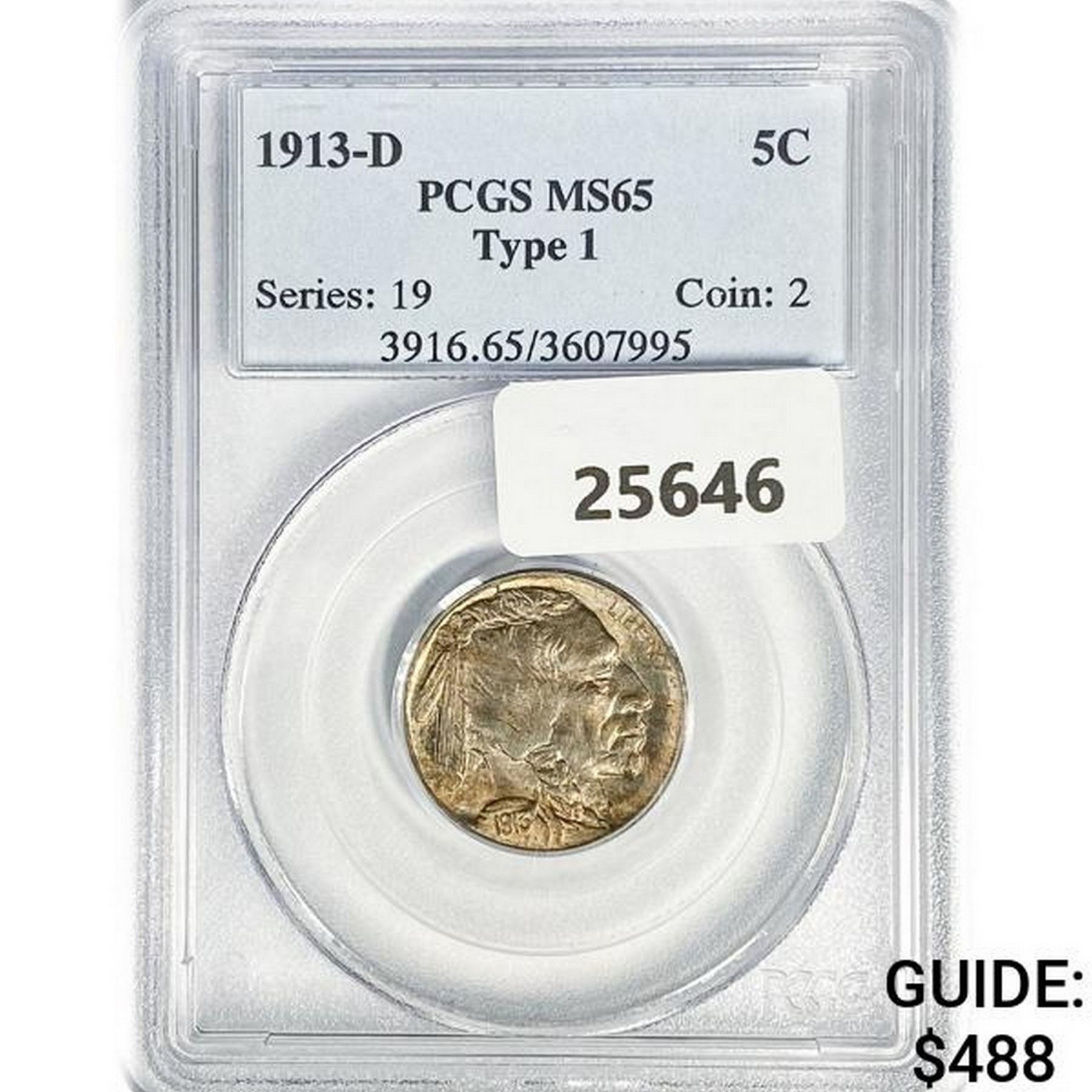 1913-D Buffalo Nickel PCGS MS65 Type 1