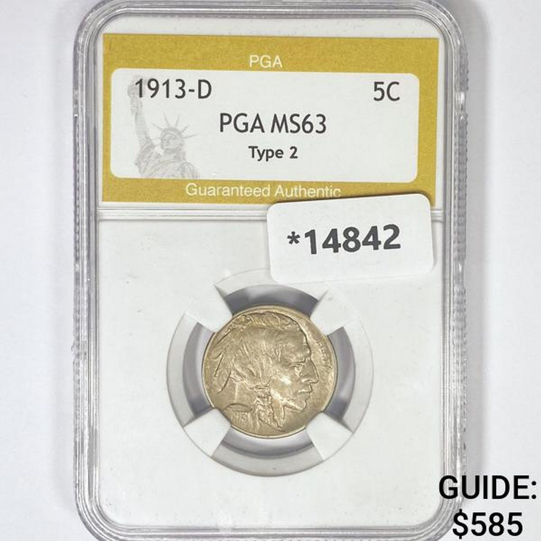 1913-D Buffalo Nickel PGA MS63 Type 2