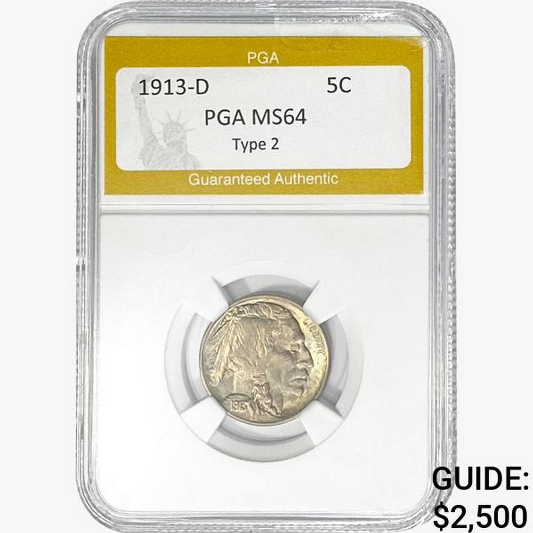 1913-D Buffalo Nickel PGA MS64 TYPE 2