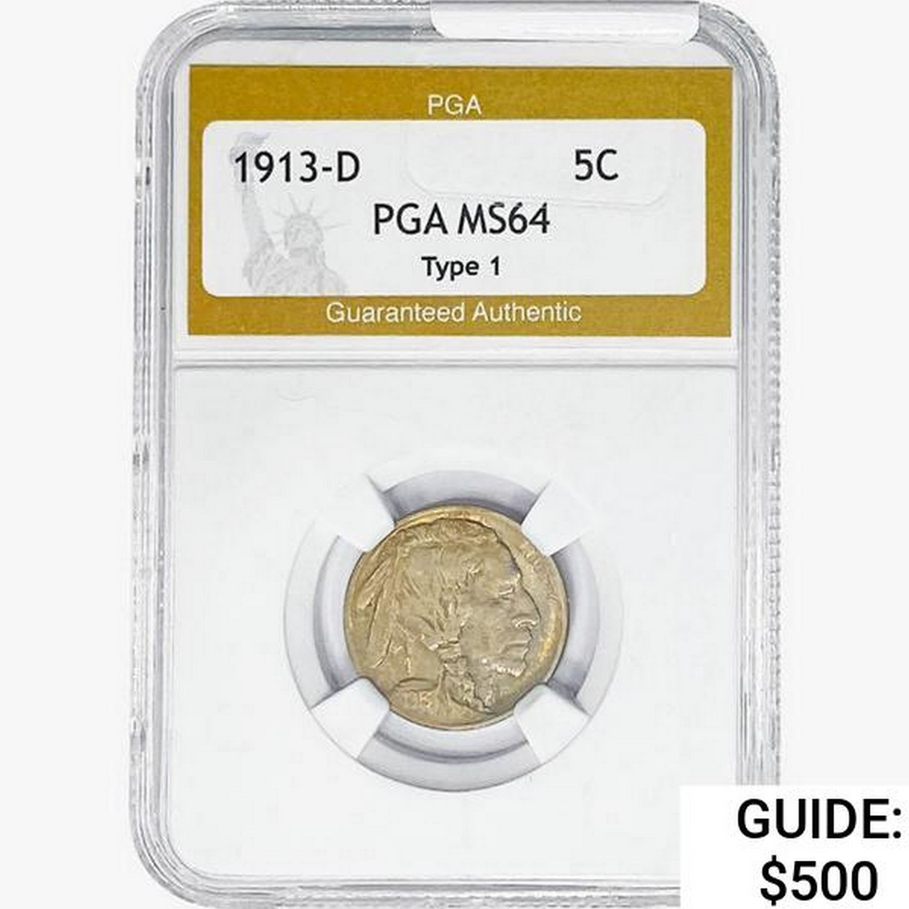 1913-D Buffalo Nickel PGA MS64 Type 1