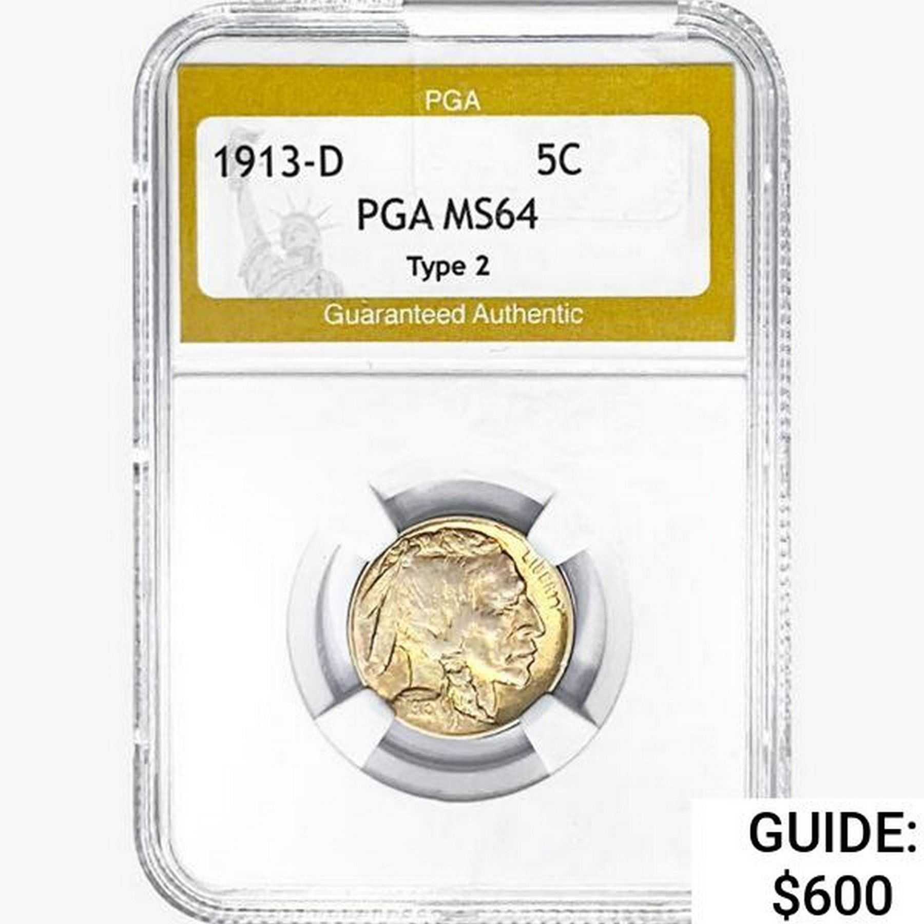 1913-D Buffalo Nickel PGA MS64 Type 2
