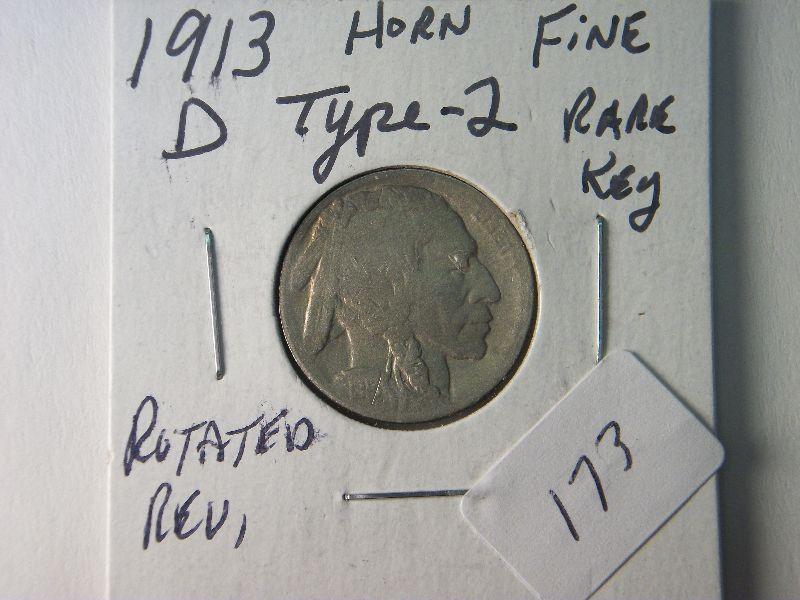 1913-D FINE TYPE 2 BUFFALO NICKEL ROTATED REVERSE RARE