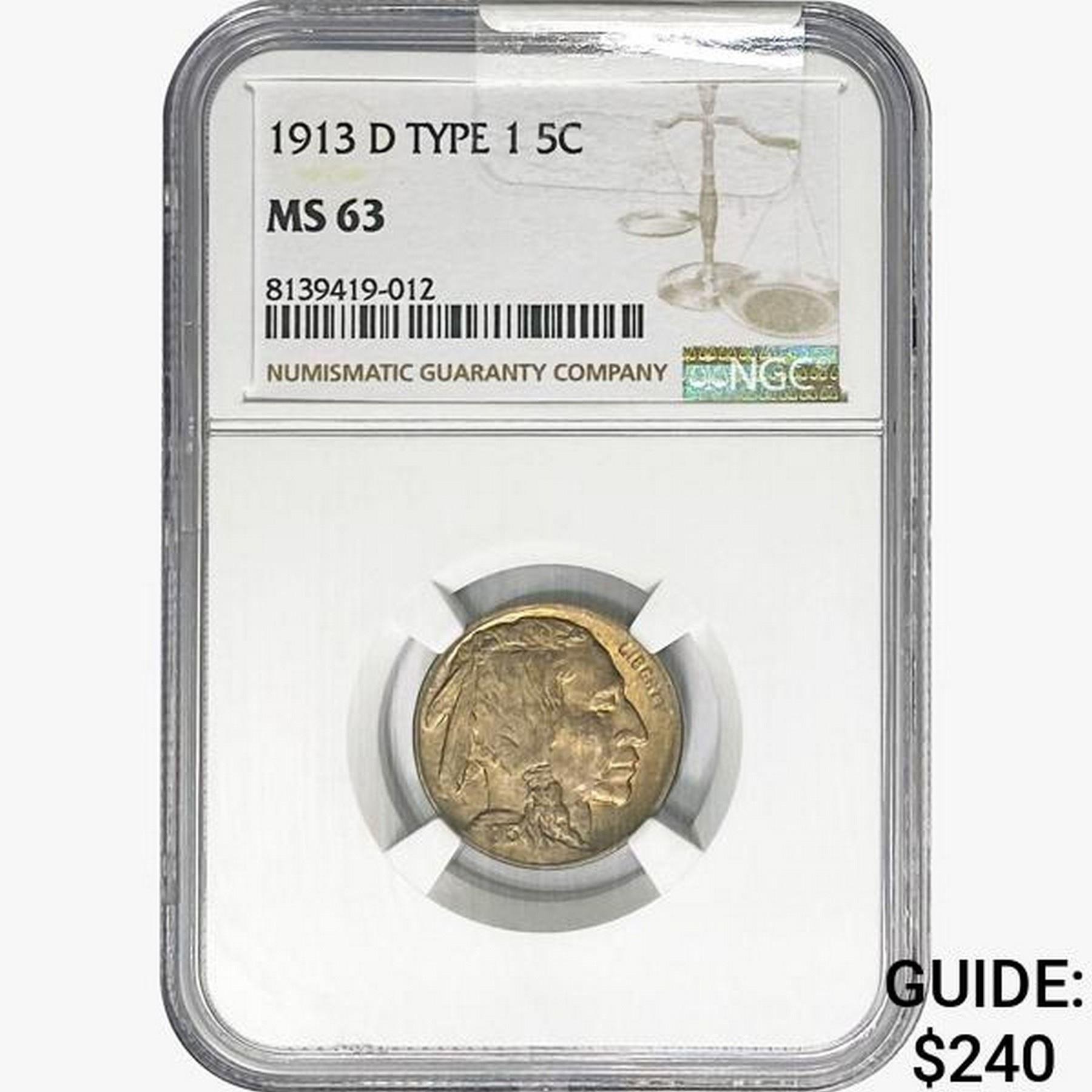 1913-D TYPE 1 Buffalo Nickel NGC MS63