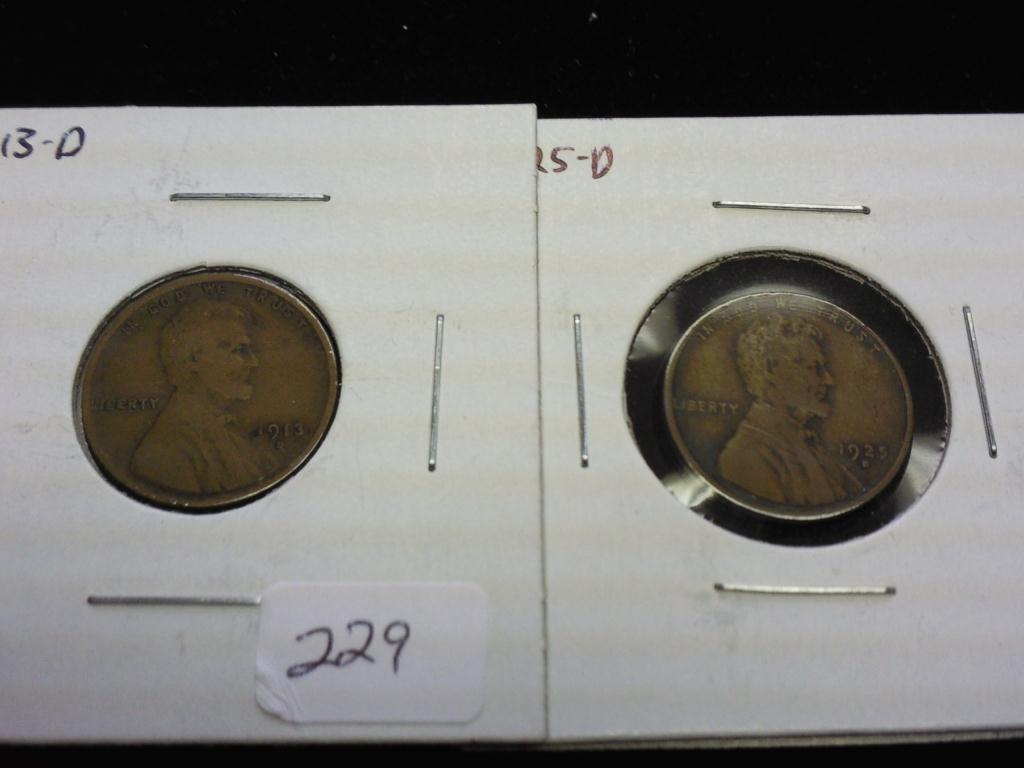 1913-D (VERY GOOD) & 1925-D (FINE) LINCOLN CENTS