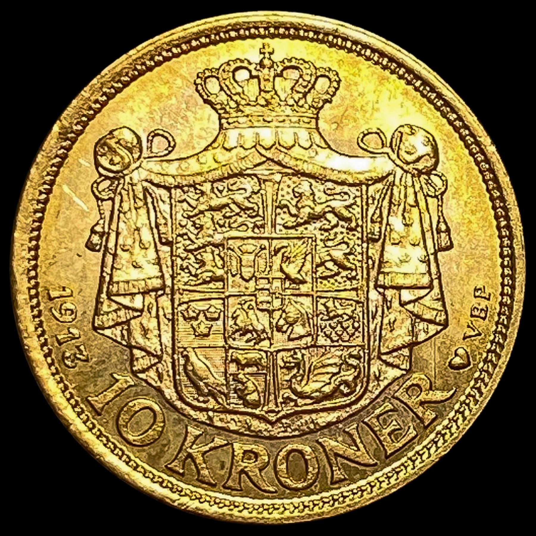 1913 Denmark Gold 10 Kroner AGW .1296oz UNC