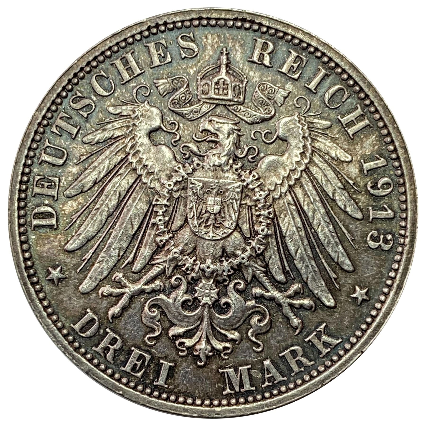 1913-E Germany Silver 3 Mark UNCIRCULATED