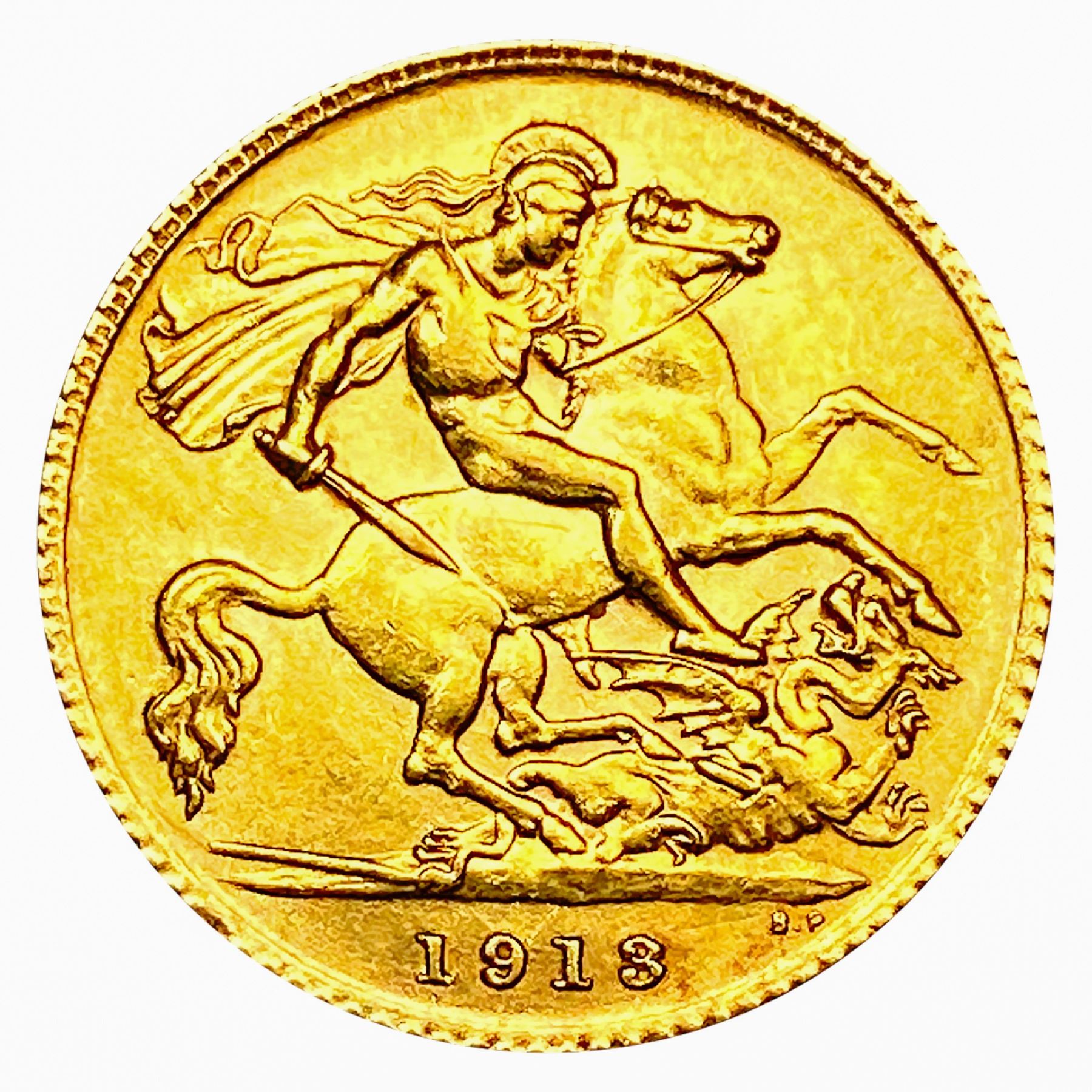 1913 G. Britain .1176oz Gold 1/2 Sovereign CLOSELY