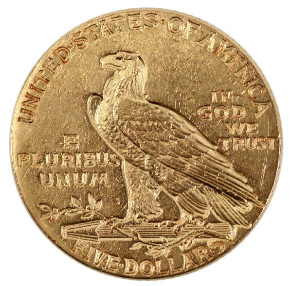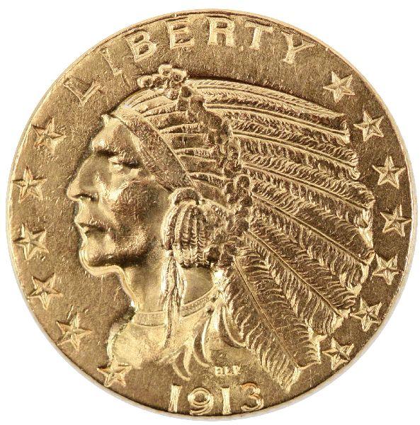 A gold Indian $5.00 half eagle AU raw ungraded coin.