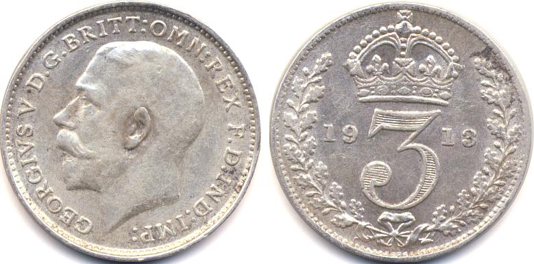 1913 GREAT BRITIAN SILVER 3 PENCE-CIRC